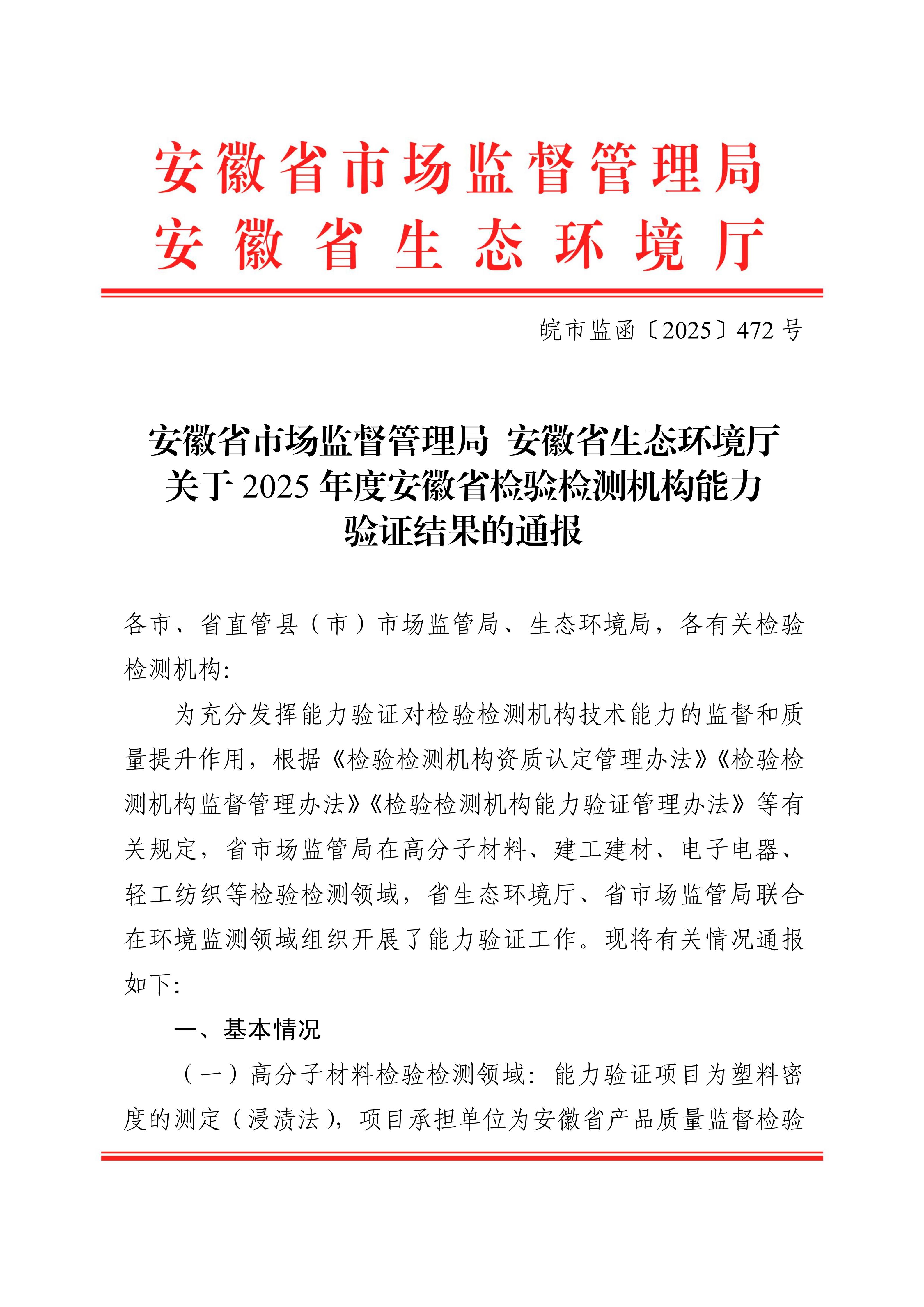 喜訊 | 祝賀我司順利通過2025年度安徽省檢驗(yàn)檢測(cè)機(jī)構(gòu)能力驗(yàn)證